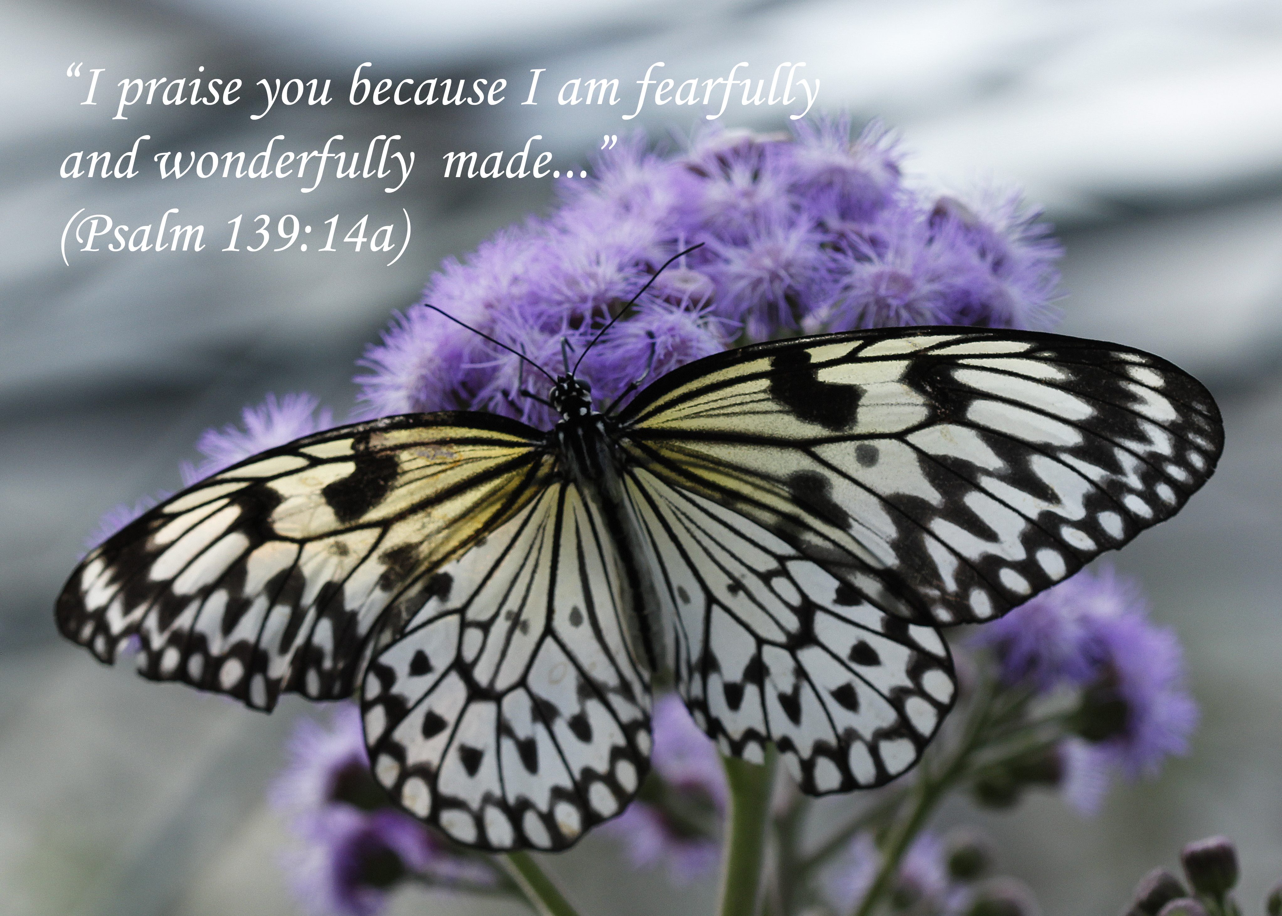 ‘Great Tree Nymph Butterfly’ with Psalm139:14a on 7″ x 5″ Photo Block. Price includes shipping £4.25 UK 2nd class