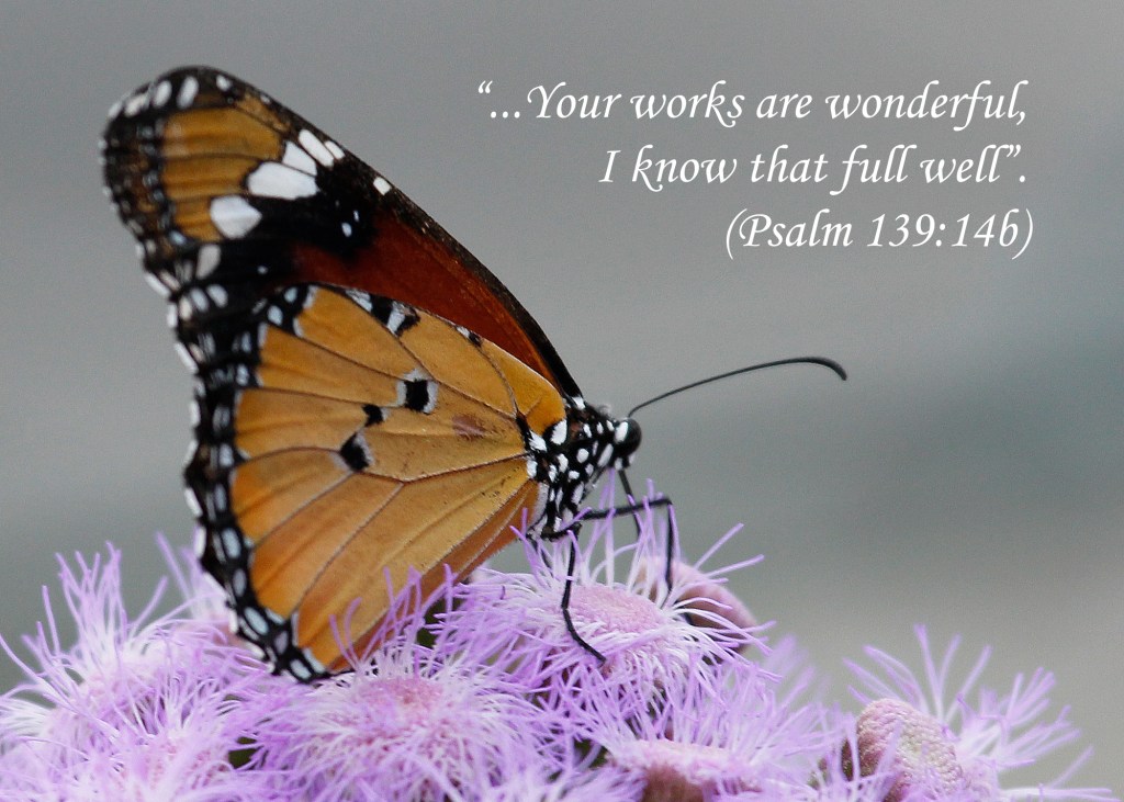 ‘Plain Tiger Butterfly’ with Psalm 139:14b on 7″ x 5″ Photo-Block. Price includes shipping £4.25 UK 2nd class