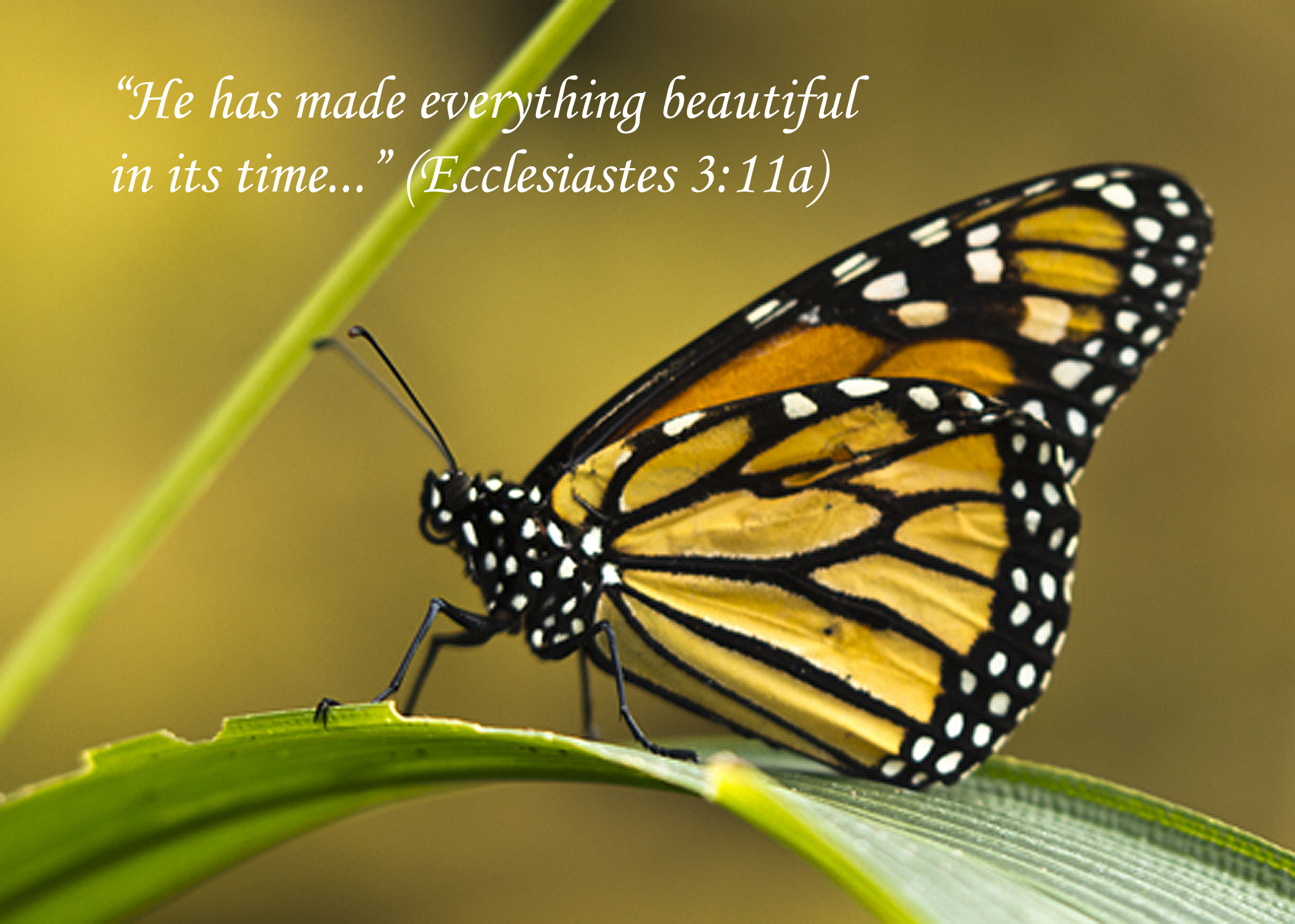 ‘Monarch Butterfly’ with Ecclesiastes 3:11a Code PB140 on 7″ x 5″ Photo-Block £24.99